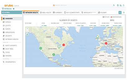 - 캠퍼스, 브랜치, 원격, 데이터 센터 및 IoT 네트워크를 단일 대시보드에서 관리 및 최적화